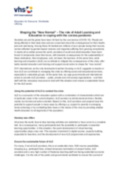 Documento de posición: El papel del aprendizaje y la educación de adultos frente a la pandemia de coronavirus (2020)
