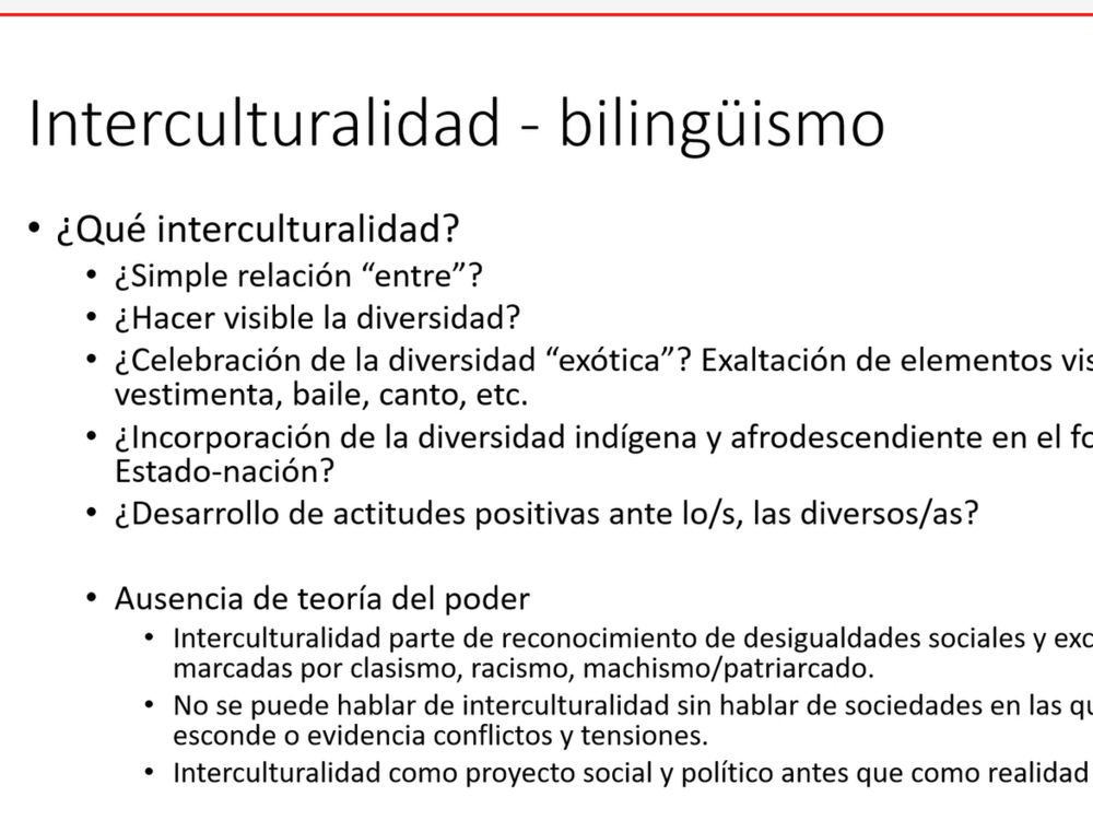 Sebastián Ixmatá, del Ministerio de Educación de Guatemala, destacó la necesidad de avanzar hacia una modalidad bilingüe e intercultural en contextos extraescolares, recuperando saberes locales y fortaleciendo el uso de las lenguas originarias desde lo comunitario. Por su parte, el académico ecuatoriano Fernando Garcés subrayó que la interculturalidad debe ser asumida como un proyecto político que enfrente el racismo estructural y no como un simple recurso decorativo en el currículo.