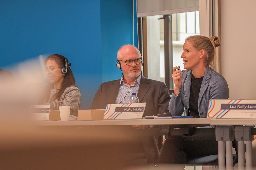 La jornada inició con una mesa redonda cuyo objetivo fue dar a conocer el trabajo de la DVV International en Colombia a nivel macro y meso. Laura Alarcón, directora de la oficina nacional en el pais expresó que la DVVI en Colombia, busca crear puentes y articular actores a través de apoyo técnico y financiero a proyectos (programas, iniciativas, actividades, ofertas) de educación no formal, formal e informal que aborden ámbitos de trabajo como: la alfabetización y educación básica; educación ambiental y desarrollo sostenible; educación para la paz y enfoque de género.