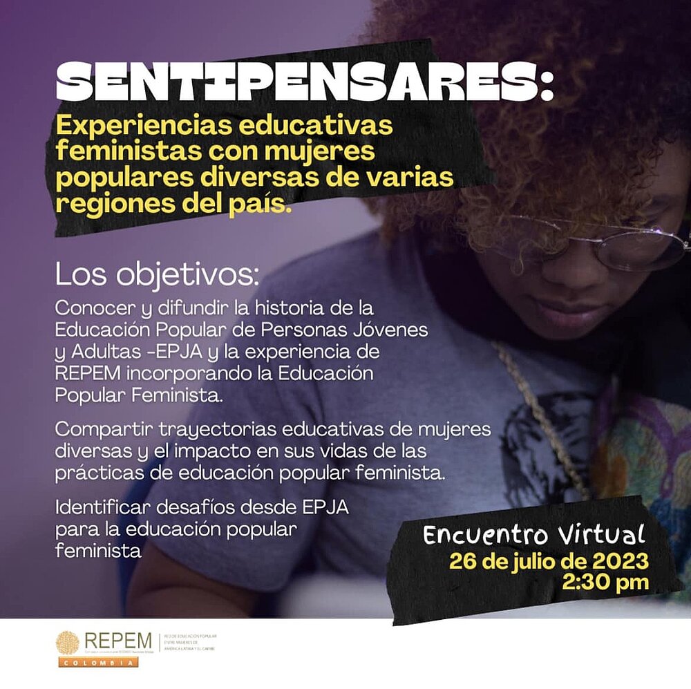 La Red de Educación Popular entre Mujeres de Latinoamérica y El Caribe (REPEM LAC) convoca al conversatorio "Sentipensares: Experiencias educativas feministas con mujeres populares diversas" que se realizará hoy, 26 de julio de 2023, a las 14:30, a través de la plataforma Google Meet, en este enlace.