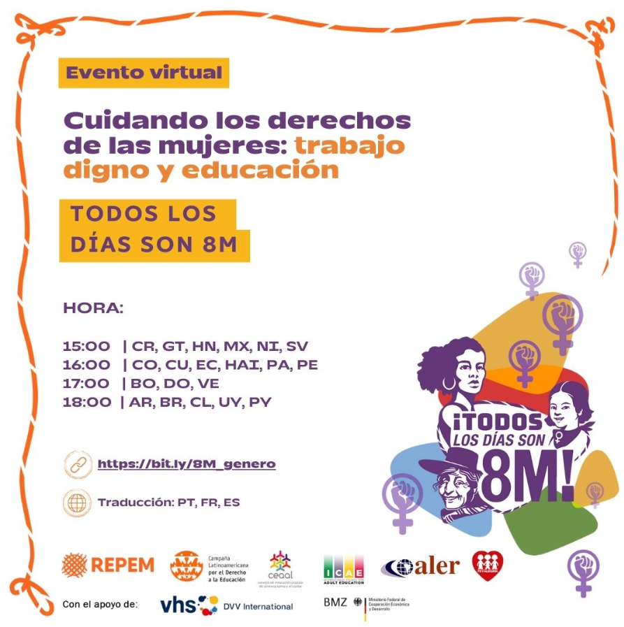 Con ocasión del Día Internacional de la Mujer, la Plataforma Regional EPJA, donde participan REPEM, CLADE y CEAAL, realizó el evento virtual "Cuidando los derechos de las mujeres: trabajo digno y…
